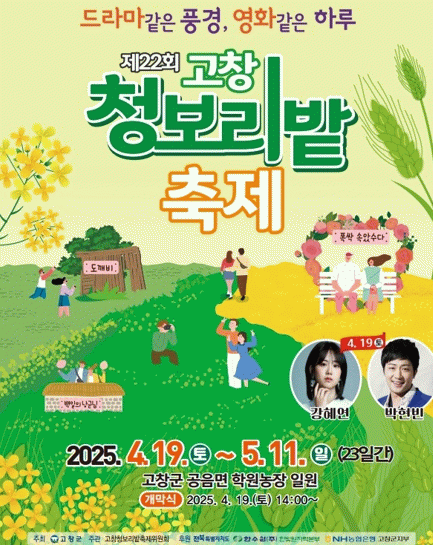 청보리밭에 빠진 K컨텐츠=올해로 22회를 맞는 고창 청보리밭 축제는 ‘드라마 같은 풍경, 영화 같은 하루’를 주제로 정했다. 실제 고창 청보리밭에서 촬영된 드라마와 영화 속 장면을 재현한 포토존을 설치해 방문객들에게 영화·드라마 속 장면에 있는 듯한 경험을 선사할 예정이다.