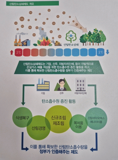 산림탄소상쇄사업은 개인 산주, 공공기관, 기업 등이 숲을 통해 이산화탄소를 흡수하고 이를 인증받아 탄소배출권으로 거래하거나 기업의 사회적 책임(CSR) 활동으로 활용토록 하는 제도다.