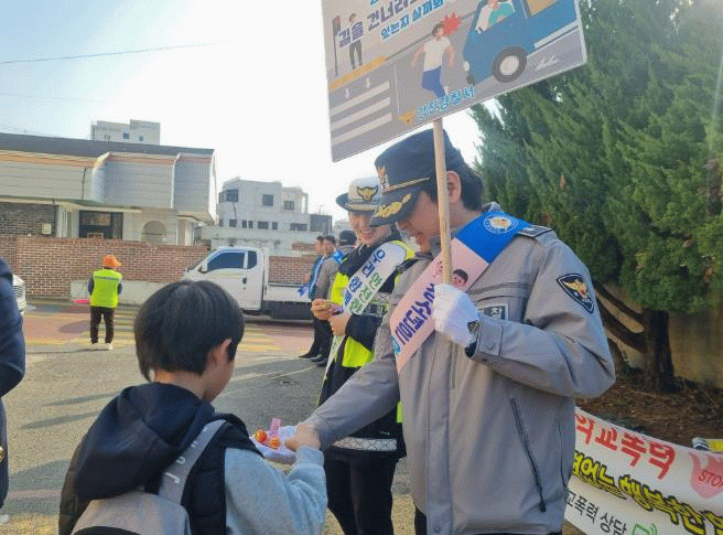 또한, 민간단체 주도로 막대사탕을 나눠주며 아이들에게 친근하게 다가가는 이벤트를 진행하는 한편 강진경찰서와 녹색어머니회가 학교 앞 교통지도를 담당해 등굣길 아이들의 안전을 관리했다.