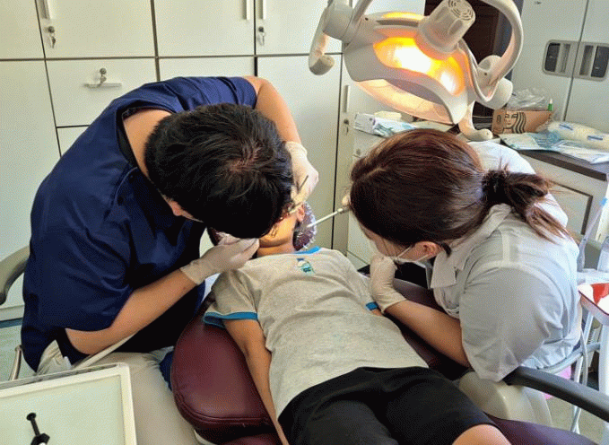 의료원 구강전문인력(공중보건의, 치과위생사)이 연 2회 학교를 방문해 구강 교육 및 구강검진, 불소도포, 치아홈메우기 등을 제공하고, 학교 담당자가 주 1회 불소용액양치를 실시하여 학령기 구강건강관리의 기초를 마련한다.