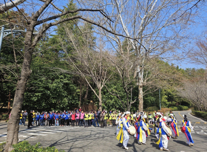 광양시민 200여 명이 참여하여 해오름풍물단의 경쾌한 장단에 맞춰 빈 페트병으로 벚나무를 두드리며 벚꽃축제의 성공적인 개최와 더불어 지역 경제 활성화를 기원하는 마음을 담아 응원의 메시지를 전달했다.