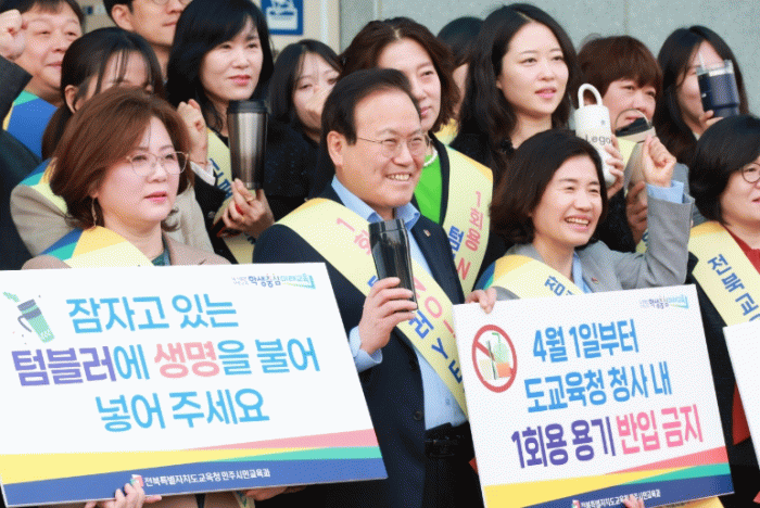 전북교육청은 이에 앞서 이날부터 이달 28일까지 ‘1회용 용기 반입 금지 캠페인’을 진행한다.