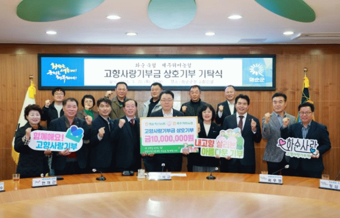제주위미농협 현재근 조합장은 “직원들의 자발적인 모금으로 이루어진 이번 상호 기부는 화순축협과 제주위미농협 간 협력을 통해 고향사랑기부금 제도가 더욱 활성화되기를 바란다”라고 말했다.