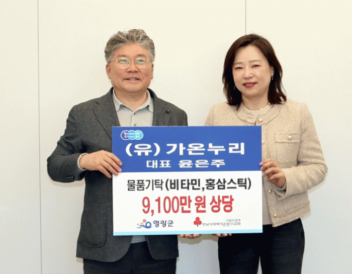 장세일 영광군수는 “어려운 이웃을 위해 건강보조식품을 기탁해준 두 대표께 감사드리며, 이번 기탁을 통해 우리 지역의 취약계층과 어르신들이 조금 더 건강한 삶을 누릴 수 있길 바란다”라고 말했다.