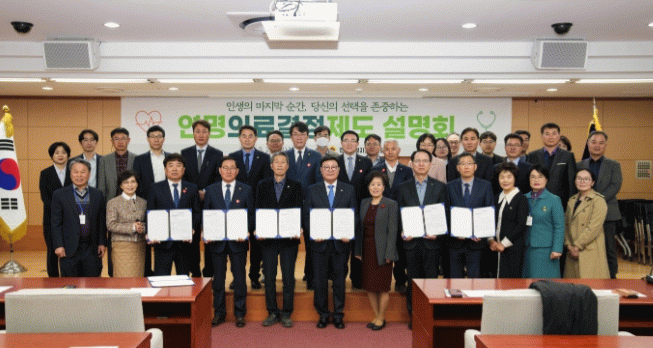 연명의료결정제도에 대한 사회적 인식을 높이기 위해 도의회가 국립연명의료기관에 요청해 마련한 이날 설명회에서는 문승우 도의장을 비롯한 도의원 및 사무처 직원 60여명이‘연명의료를 받지 않겠다’는 사전연명의료의향서를 작성해 등록했다.