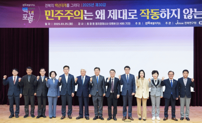 전북연구원은 25일 오전 8시 전북특별자치도청 대회의실에서 ‘민주주의는 왜 제대로 작동하지 않는가’를 주제로 '전북 백년포럼' 제30강을 개최했다.