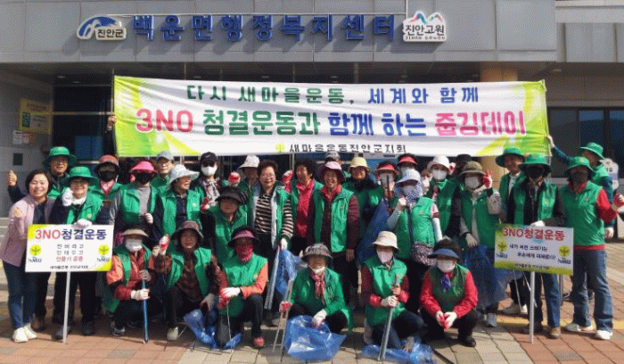 김문옥 지회장은 “3NO 청결운동을 통해 쓰레기 줍기를 생활화하고, 탄소중립 실천과 더불어 깨끗하고 아름다운 진안군을 만드는 데 최선을 다하겠다”고 말했다.