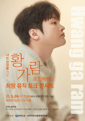 박정희 아나운서의 사회로 “나는 반딧불”을 비롯한 “기억 속의 먼 그대에게”. “How am I supposed live without you”, “미치게 그리워서” 등 가수 황가람의 노래와 인생, 그리고 무주와의 인연 등에 얽힌 이야기들을 들을 수 있다.
