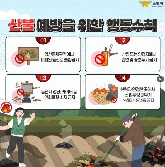 특히 논·밭두렁 태우기, 쓰레기 소각 등 부주의로 인한 화재 발생이 집중되는 시기인 만큼, 지역 주민들을 대상으로 산림 인접지역 불법 소각 금지와 인화물질 취급시 주의를 당부했다.