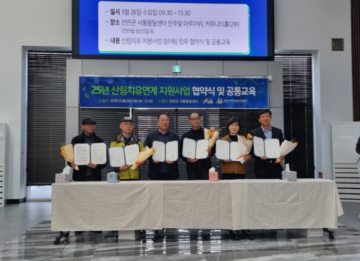협약식에서 진안군청 최건호 산림과장은 “참석자들의 창의적인 아이디어와 열정을 바탕으로 진안만의 특색있는 치유 콘텐츠가 사업모델이 만들어 지길 바란다”며 “군에서도 행정적 지원을 아끼지 않아 산림을 기반으로 한 성장의 기반이 될 수 있도록 노력하겠다”고 말했다.