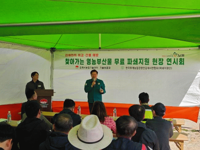 한편, 김제시농업기술센터 기술보급과는 영농부산물 안전처리 지원사업을‘24년부터 추진하고 있으며, 76농가(47.8ha) 파쇄지원을 하여 농업인들에게 호평을 받고 있다.