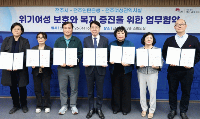 시는 26일 시청 3층 소회의실에서 전주연탄은행, 전주지역 6개 여성권익시설과 위기여성 보호 체계 강화 및 여성 복지 증진을 위해 상호 협력키로하는 내용의 업무협약을 체결했다.