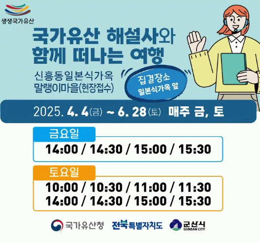 군산시 관계자는 “이번 프로그램은 군산의 역사와 문화를 사람들에게 알리는 소중한 기회가 될 것이며, 지역 사회의 문화적 자긍심을 높이는 데 기여할 것.”이라고 말했다.