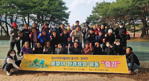 ESG경영 실천 중 하나로 진행한 이번 ‘줍깅’은 지역사회 환경보호와 봉사문화 확산을 목표로 장수지역자활센터 종사자와 참여자 45명이 참여한 가운데 이뤄졌다.