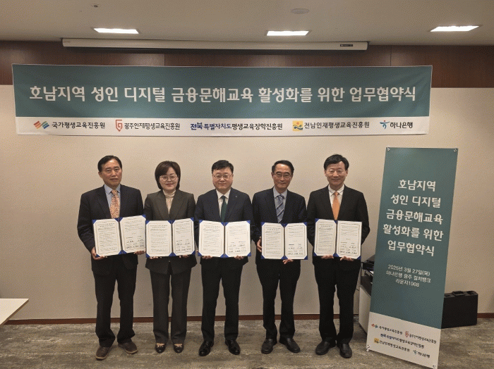 전북특별자치도평생교육장학진흥원 이현웅 원장은 “전북특별자치도의 문해교육과 평생교육이 질적으로 성장하기 위해서는 공공과 민간의 협력이 필수”라며, “이번 협약을 계기로 하나은행과 함께 보다 많은 도민이 따뜻한 교육 기회를 누릴 수 있기를 기대한다”고 말했다.