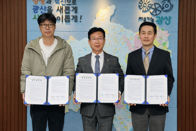 광산구는 27일 구청에서 SK가 설립해 운영하는 사회적 기업 ㈜행복나래(본부장 조민영), 사회적 협동조합 행복도시락(이사장? 대표? 000)과 ‘광산구 행복두끼 프로젝트’ 업무협약을 체결했다.