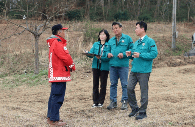 박병규 청장은 최근 산불이 발생한 임곡동 피해 현장, 산불 취약지 대비 상황을 살피고, 산불 전문 예방진화대원들을 만나 격려했다.