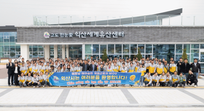 익산시는 27일 고도한눈애(愛) 세계유산센터에서 '베트남 애아숩현 계절근로자 환영회'를 열었다.