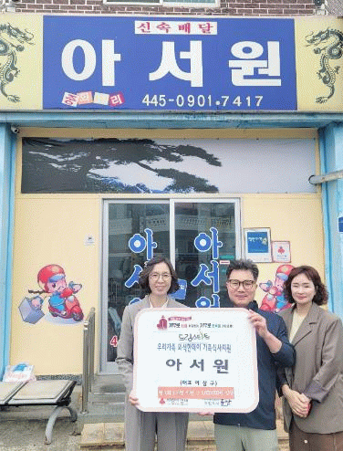 아서원은 이번 협약 외에도 경암동 ‘아이소리 지역아동센터’ 아동들에게 매월 1회 석식으로 자장면과 탕수육을 제공하고 있으며, 매년 복날이면 닭 100마리를 기부해 어르신들에게 삼계탕을 대접하는 등 지역사회를 위한 나눔을 꾸준히 실천해 귀감이 되고 있다.