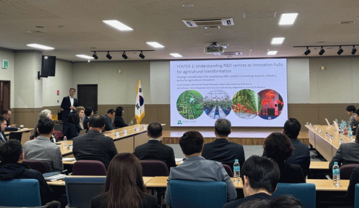 전북자치도는 27일 전북바이오융합산업진흥원에서 와게닝겐 대학 연구진이 ‘전북 도내 디지털 농업 및 디지털 육종 센터 설립 프로젝트’를 소개하는 세미나를 개최했다고 밝혔다.