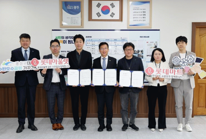 광산구는 28일 수완지구 롯데쇼핑몰 입점 업체인 롯데아울렛 광주수완점, 롯데마트 수완점과 ‘수완호수공원 관리개선을 위한 업무협약’을 체결했다고 밝혔다.