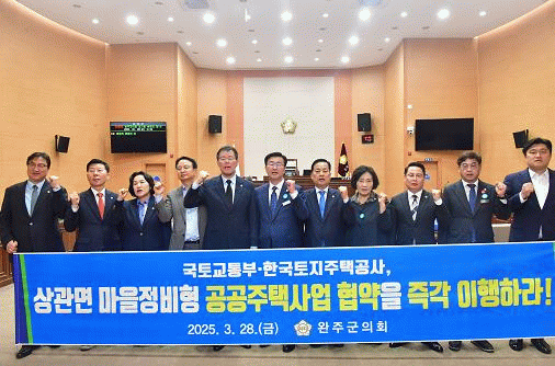 이주갑 의원은 건의문을 통해 “2018년 국토교통부 공모사업으로 선정된 이 사업은 취약계층의 주거 안정과 지역 발전을 목표로 완주군과 LH가 협력하여 추진하기로 한 중요한 사업”이라고 성토했다.