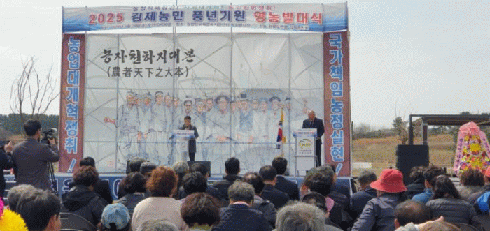김제농민회장 최재선 회장은 “도작문화의 발상지로 역사와 전통이 살아숨쉬는 곳이며 우리나라 최대, 최고의 저수지 벽골제가 있는 김제시에서 영농발대식을 개최함으로써 농민들이 겨우내 움츠러들었던 몸과 마음에 활력을 붙어넣고 올 한 해 농사도 큰 재해 없이 농사가 순조롭게 진행돼 대풍이 들었으면 좋겠다”고 말했다.