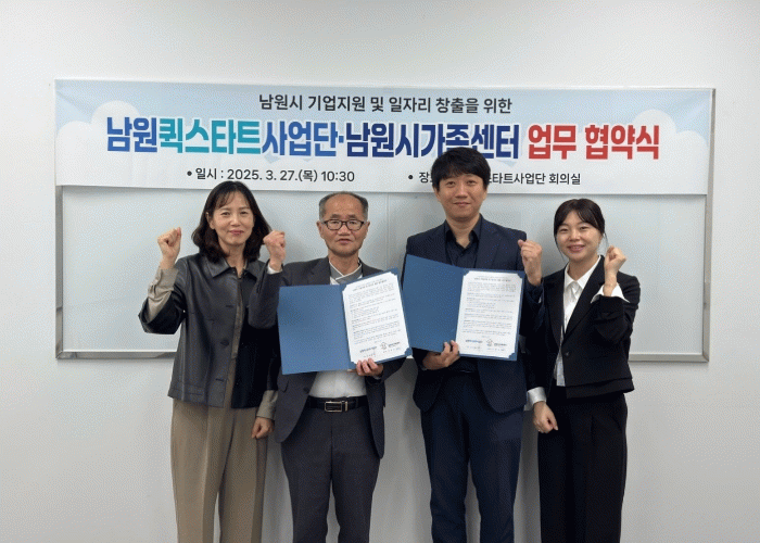 퀵스타트사업단 고경환 단장 역시 “이번 협약을 계기로 기업의 구인난을 해소하고, 신설·증설 기업들이 남원에 자리 잡고 사업을 확장할 수 있도록 남원시가족센터와 적극 협력하겠다”고 전했다.