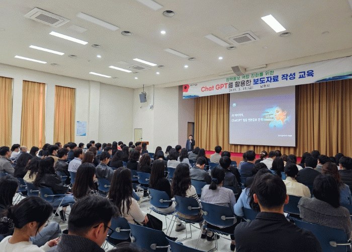 강의는 인공지능(AI) 리터러시와 챗지피티 활용을 중심으로 한국산업기술원 사회소통망(SNS) 연구소 이영환 소장이 맡았다. 이번 강의에서 남원시청 직원들은 챗지피티의 이해와 활용, 보도자료 작성을 위한 효과적인 입력값(프롬프트) 작성법, 보도자료 작성의 기본 원칙을 숙지했다.