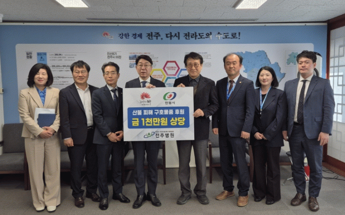 영경의료재단 전주병원은 28일 불의의 산불 피해를 입은 안동시 주민들의 일상 회복을 돕기 위한 성금 1000만 원을 전주시에 전달했다.
