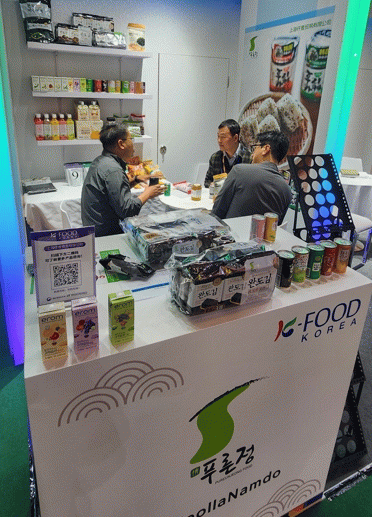 지난 27일까지 3일간 열린 올해 박람회에 전남도는 전남 농수산식품관을 운영했다. 전남지역 참가 기업은 서광식품영농조합법인(유자차), ㈜가리미(구운김·조미김·마른김), ㈜푸른정식품(알로에음료·전복죽·전복김국·전복카레), ㈜가보팜스(배즙·도라지배즙), 4개 기업이다. 1대1 수출상담, 제품 시식행사 등을 통해 현지 바이어와 소비자들에게 전남 농수산식품의 우수성을 선보였다.
