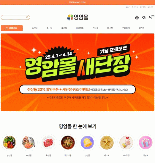 영암몰은 이번 새단장을 기념해 4월1일부터 14일까지 2주간 전 품목 20% 할인 판매를 실시한다.