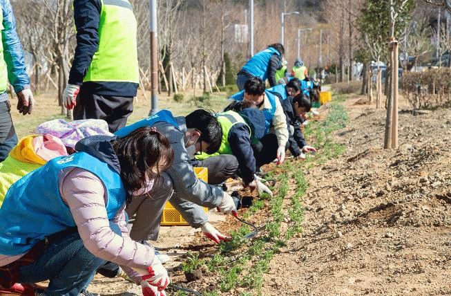 참석자들은 소나무, 무궁화, 야생화(송엽국, 홍설, 맥문동, 옥잠화) 등 6,500여 본을 심었다.