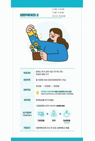 ‘희망저축계좌2’는 근로·사업 소득이 있는 주거·교육 급여 수급 가구 또는 차상위 계층이 저축을 할 경우, 정부가 일정 금액의 근로소득 장려금을 지원해주는 사업이다.