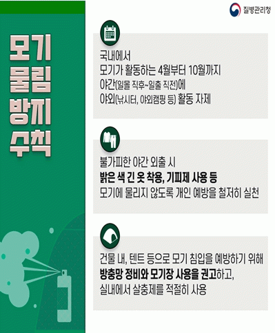 전경식 전북자치도 보건환경연구원장은 “일본뇌염 주의보 발령에 따라 도민들이 감염병으로부터 안전할 수 있도록 철저한 감시체계를 유지하겠다”며, “면역력이 약한 생후 12개월 ~ 만 12세 아동은 국가예방접종을 완료하고, 야외활동 시 밝은색 긴 옷 착용 및 기피제 사용 등 방지수칙을 준수해 줄 것”을 당부했다.