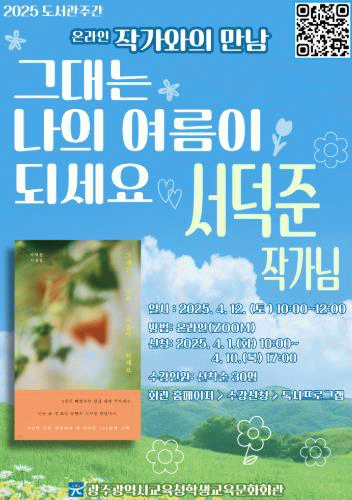 이번 행사는 광주학생교육문화회관 주관으로 열리는 ‘2025년 도서관의 날·도서관 주간 및 세계 책의 날’ 프로그램의 하나로 마련됐으며, 온라인 ZOOM 강연 방식으로 진행된다.
