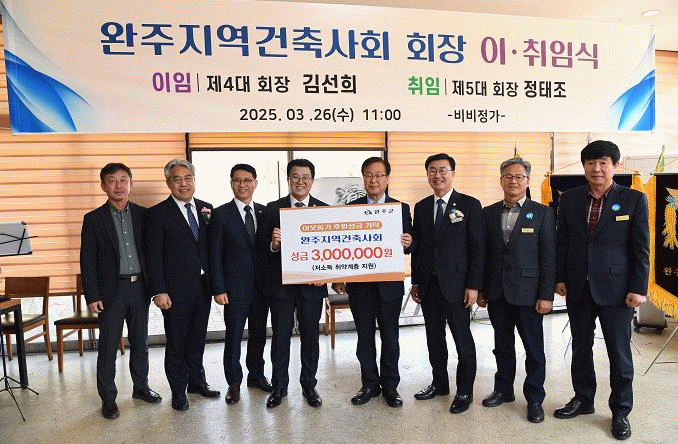 한편, 완주지역건축사회는 지속적인 성금 기부와 재능 나눔 등 지역 공헌사업을 활발히 추진 중이다.