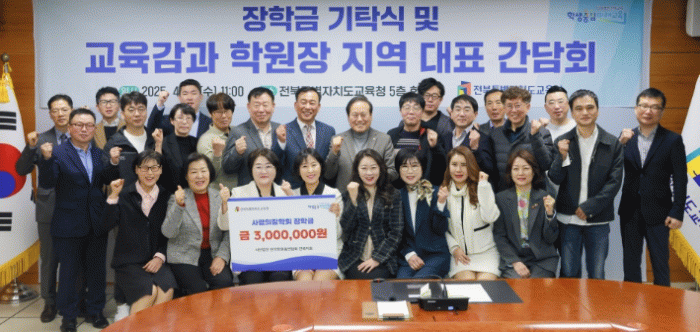 이와 함께 학원총연합회 전북지회는 이날 지역 교육 발전과 학생 지원을 위해 써달라며 300만 원의 사랑의 장학금을 기탁했다.