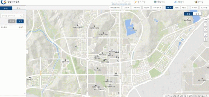 생활지리정보시스템이란 항공사진(정사영상), 지번, 도로명 주소, 건물 위치 등 ‘생활정보’와 공시지가, 토지면적 등 ‘부동산정보’, ‘시내버스 정보’, ‘각종 주제도’(용도지역, 도시계획시설 등) 등을 확인할 수 있도록 구축한 시스템이다.