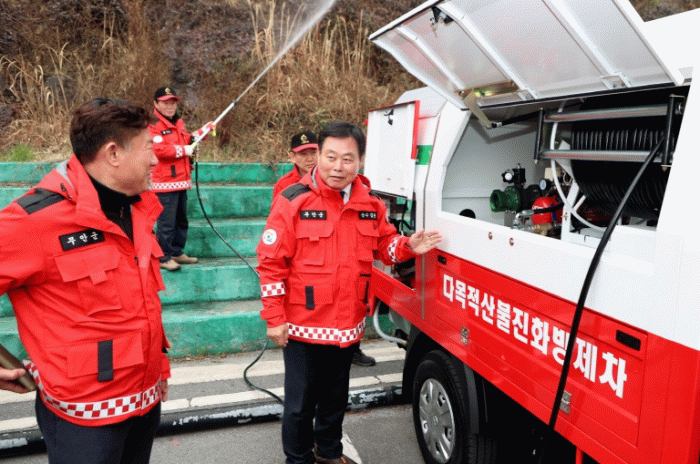 산불진화차량은 산불 위험이 높은 일로읍·삼향읍·청계면·몽탄면·해제면에 고정 배치돼 예찰 활동을 수행하고, 산불 발생 시 즉각 출동해 30분 이내에 초동 진화를 목표로 하는 ‘골든타임 대응 체계’를 본격 가동한다.