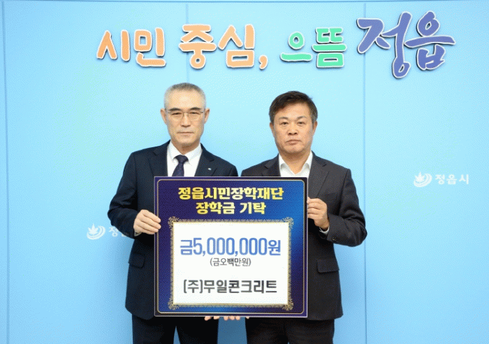 이날 무일콘크리트(대표 김형일)는 500만원의 장학금을 전달하며, 경제적 어려움을 겪는 학생들에게 실질적인 도움을 전했다. 기탁식에 참석한 김형남 이사는 “학생들이 학업에 전념하고 꿈을 이루는 데 작은 힘이 되길 바란다”고 전했다.