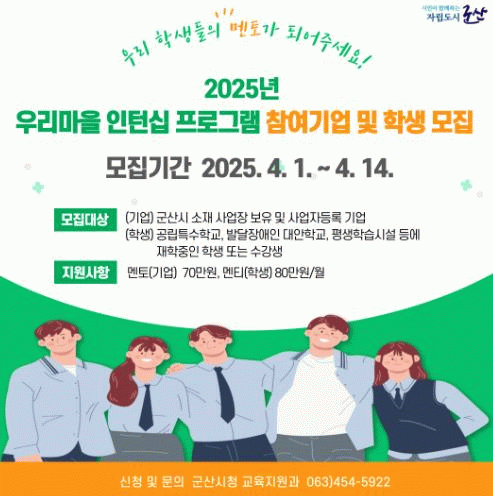 군산시는 ‘우리마을 인턴십’이 학생들에게는 실무 체험 기회를, 기업에는 장애인 고용에 대한 이해를 높이는 계기를 줄 것으로 기대하고 있다.