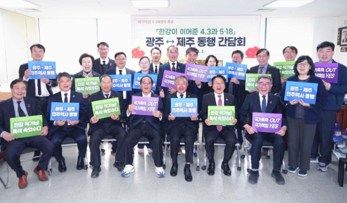 이틀 일정으로 제주를 방문한 강기정 시장은 첫날인 2일 제주4·3평화기념관 유족회 사무실에서 ‘한강이 이어준 4·3과 5·18 광주↔제주 동행 간담회’를 열어 ‘평화연대 방안’을 논의했다.