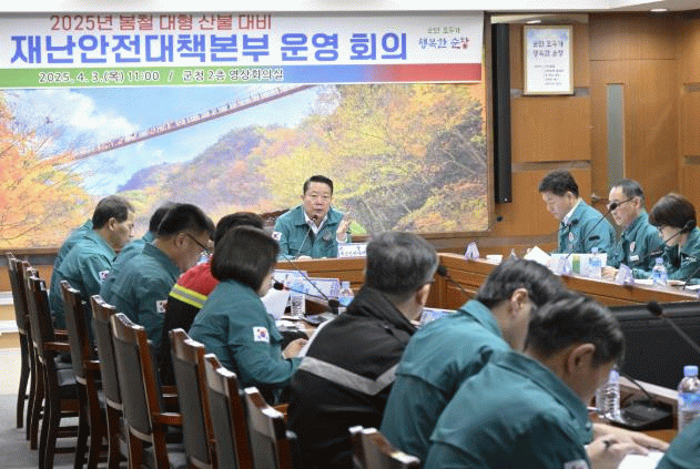 이날 회의에는 재난안전대책본부장인 최영일 군수와 염기남 부군수, 그리고 13개 실무반을 담당하고 있는 부서장들이 참석해 각 부서 임무와 산불 대비 상황을 보고하고 문제점을 토론하는 자리를 가졌다.