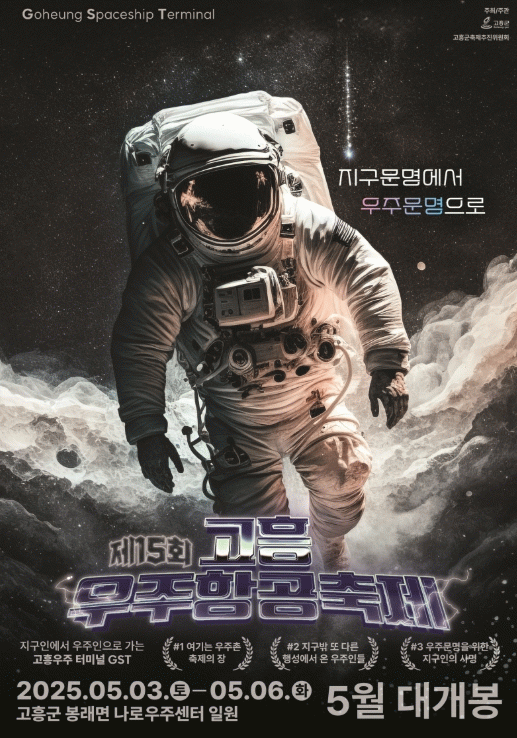 군 관계자는 “오는 5월 개최되는 제15회 고흥우주항공축제는 더욱 다양하고 풍성한 프로그램을 통해 축제장을 찾는 어린이와 청소년들에게 희망과 즐거움을 선사하고, 군민 모두가 자긍심을 갖는 고흥군만의 특색있는 인류 최초 우주촌 축제로서의 위상을 높여 나가겠다”고 말했다.