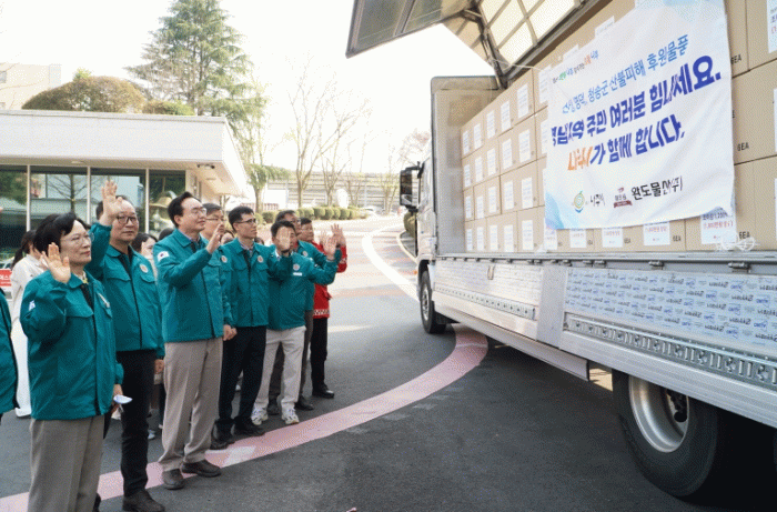 또한 관내 김 생산업체인 완도물산영어조합법인도 따뜻한 나눔에 동참해 도시락김 1,200상자(1,800만원 상당)를 기부해 총 3,000만 원 상당의 구호 물품이 산불 피해 지역으로 전달된다.