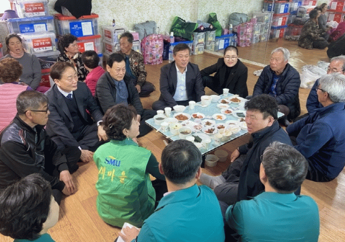 이 시장은 지난 2일 산불 피해를 입어 소성면 구룡경로당에서 지내고 있는 이재민 12명을 재차 방문했다.