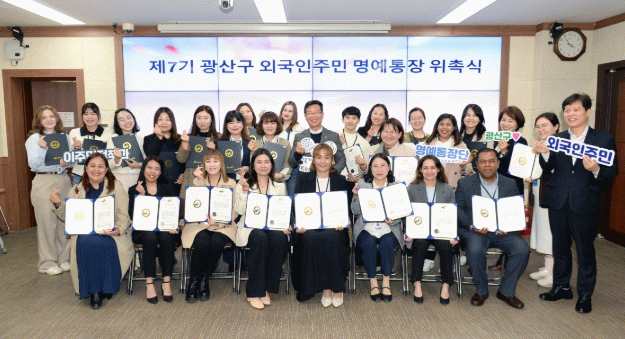 제7기 광산구 외국인주민 명예 통장은 지난 3월 공개모집과 심사를 통해 최종 14개국 24명의 외국인 주민이 선정됐다.