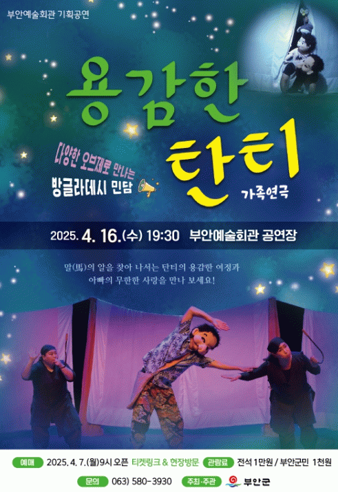 부안군 관계자는 “온 가족이 함께 공연을 관람하며 가족의 소중함을 교감하길 바란다”고 전했고, 앞으로도 문화 향유 기회 확대를 위해 지속적으로 다양한 공연을 추진할 계획임을 밝혔다.