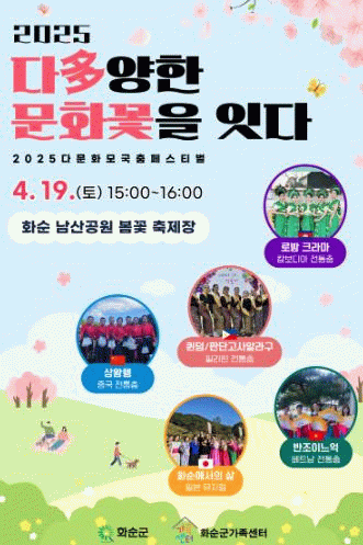 남산공원 축제장 주무대에서 열리는 이번 행사는 '다(多)양한 문화꽃을 잇다'를 주제로 화순군가족센터가 주관하며, 결혼이민 여성들이 모국의 전통춤으로 문화적 자긍심을 높이고, 지역민들과 함께 소통하며 따뜻한 지역공동체를 만들어가기 위해 마련됐다.
